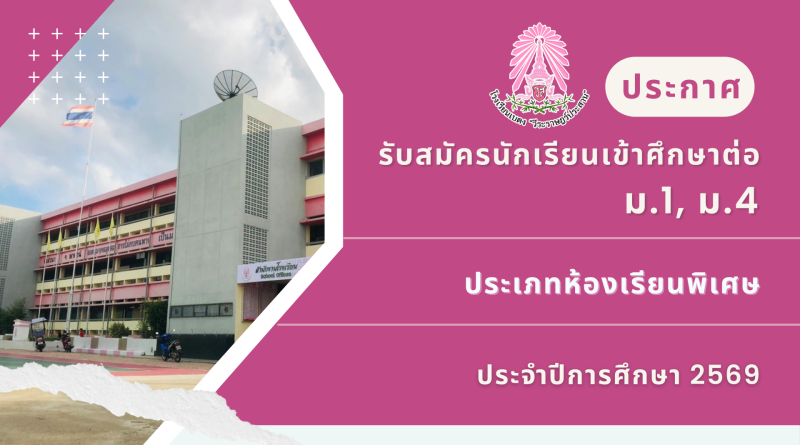 Web Feedsรับสมัครนักเรียน ประจำปีการศึกษา 2569 ประกาศ : รับสมัครนักเรียนเข้าศึกษาต่อ ม.1, ม.4 ประเภทห้องเรียนพิเศษ ประจำปี 2569 13 มกราคม 2026 admin 2 ประกาศ-เรื่อง-การรับสมัครนักเรียนเข้าศึกษ Post Views: 20