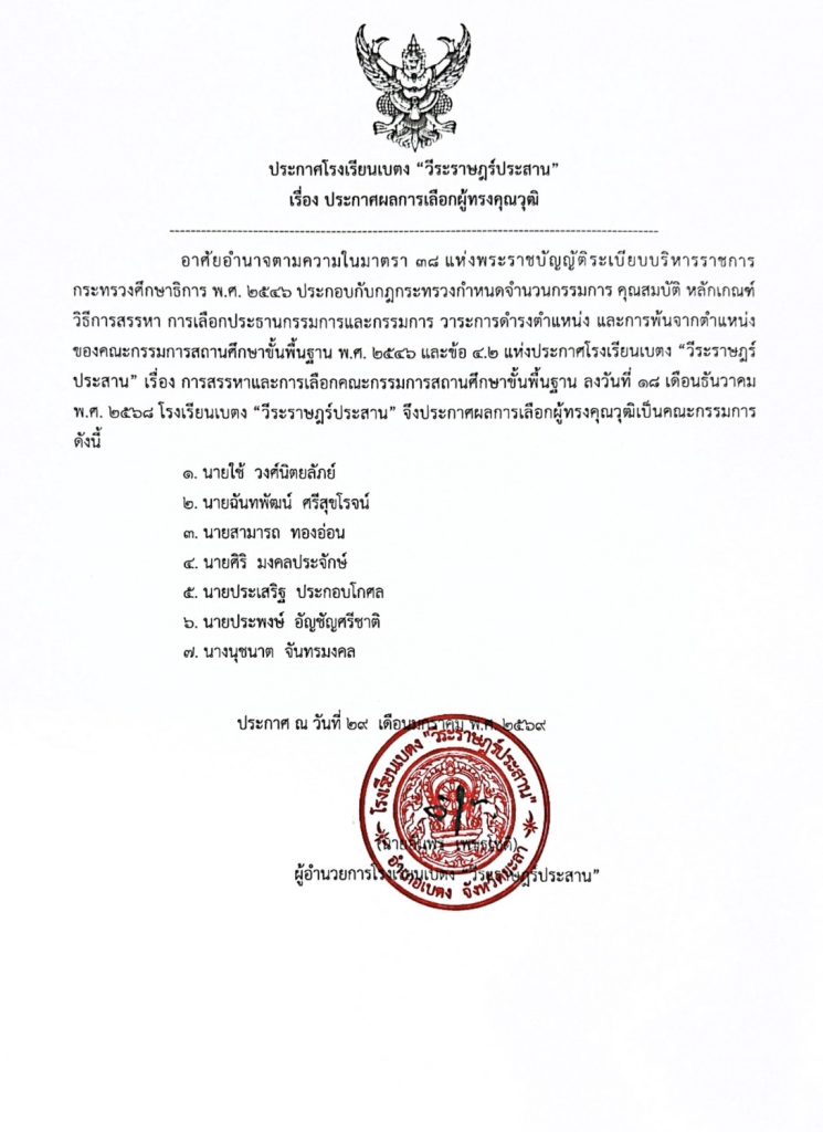ประกาศ : รายชื่อผู้มีสิทธิ์เข้าทดสอบโครงการฝึกสมองประลองปัญญา Wirarat Pre-test ’69